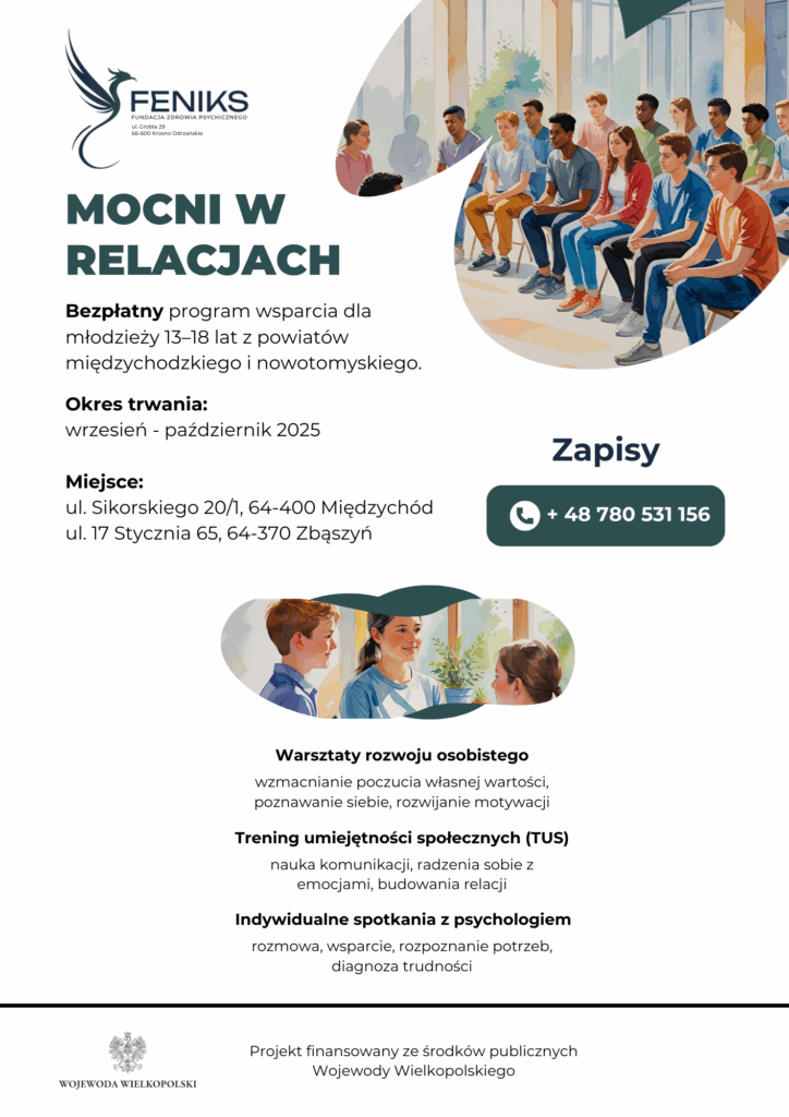 W Fundacji Feniks pomagamy osobom w kryzysie, oferując bezpłatne wsparcie psychologiczne i prawne. Wspieramy rodziny, seniorów i osoby zagrożone wykluczeniem społecznym, by odzyskały poczucie bezpieczeństwa i sprawczości. Tworzymy programy integracyjne i aktywizujące, dając realną szansę na lepsze, bardziej stabilne życie.